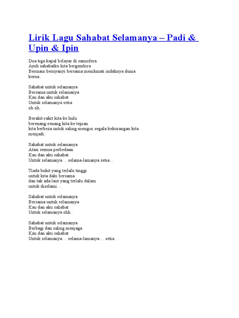 Lirik Lagu Sahabat Selamanya Padi Upin Ipin Pdf